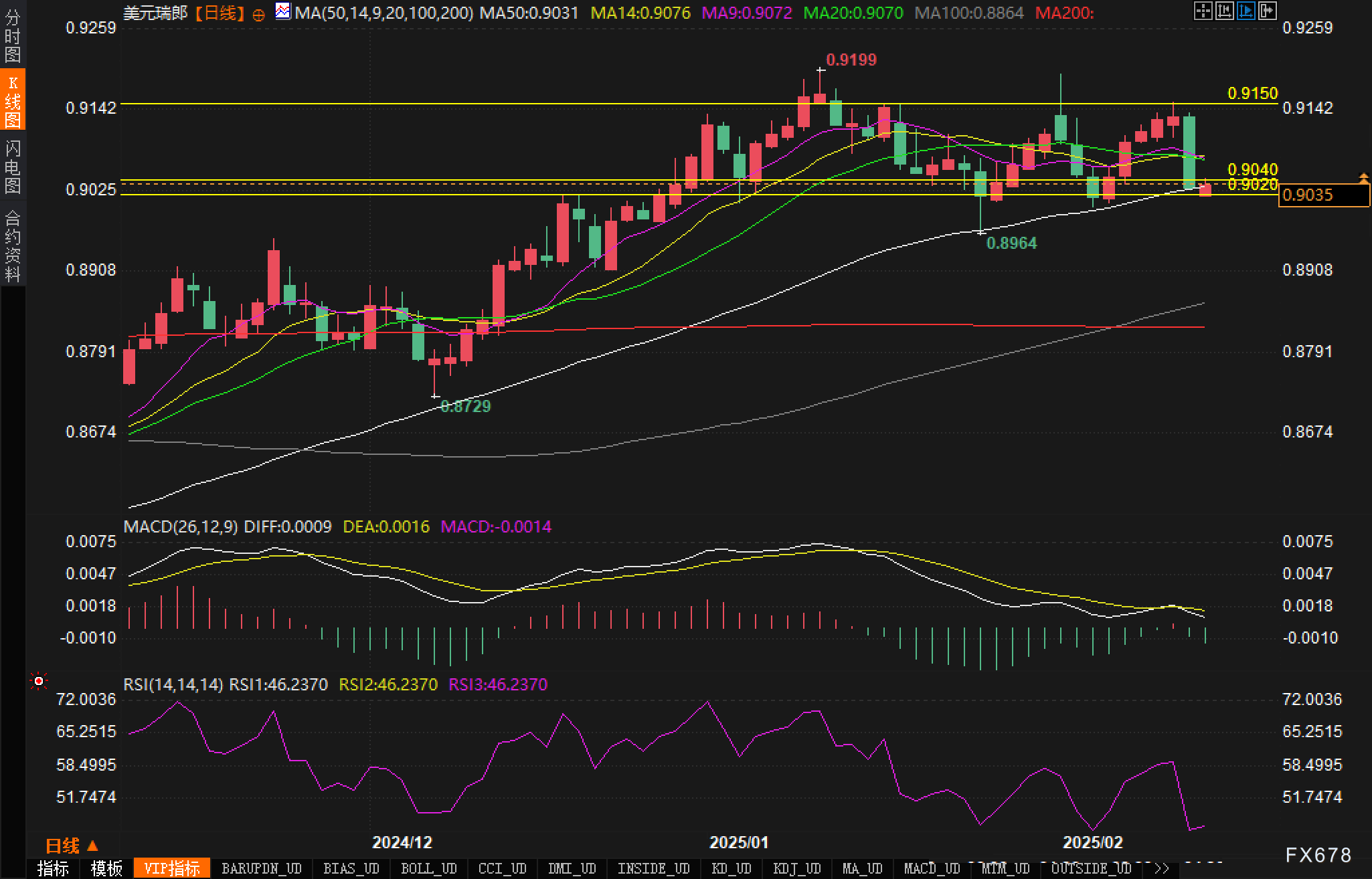 综合技术分析:综合来看,美元/瑞郎当前从日内低位反弹,若价格能够在0.9040附近企稳,并且继续收复0.9150的前期阻力,则未来可能会进一步挑战更高的价位。而在回调的过程中,若支撑位继续得到有效支撑,那么短期内的回撤也将被多头视为入场信号。