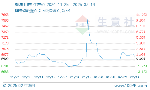 近期国际油价行情回落为主,截止13日,美国WTI原油期货主力合约结算价报71.29美元/桶,布伦特原油期货主力合约结算价报75.02美元/桶。一方面美国提高原油产量,加之不断升级的贸易关税可能会抑制全球经济增长,此消息利空国际油市。另一方面俄乌之间有望停火谈和,国际油价受此走势回落,整体来看国际油价走势下滑,受此影响国内汽柴油价格行情走低。