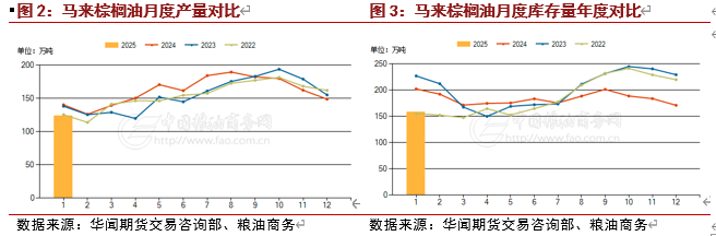 马来西亚棕油总署(MPOB)2月10日公布的报告显示,马来西亚1月末棕榈油库存减少7.55%,至158万吨,低于此前机构预计为165-166万吨。马来 1月油棕产量环比下降16.8%;1月出口量环比减少12.94%。