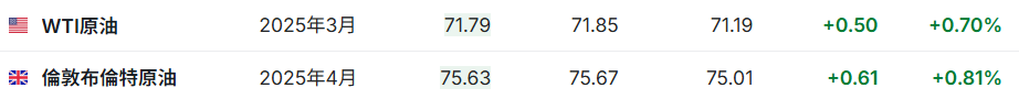 3. 截至发稿,WTI原油涨0.70%,报71.79美元/桶。布伦特原油涨0.81%,报75.63美元/桶。