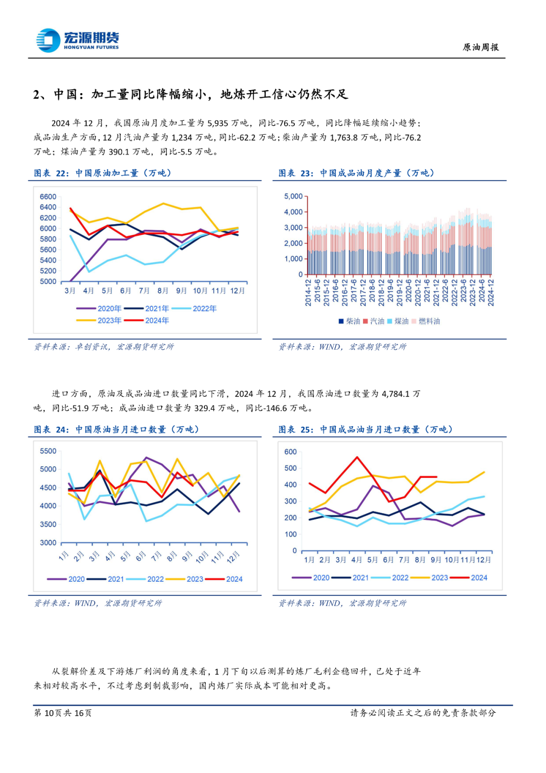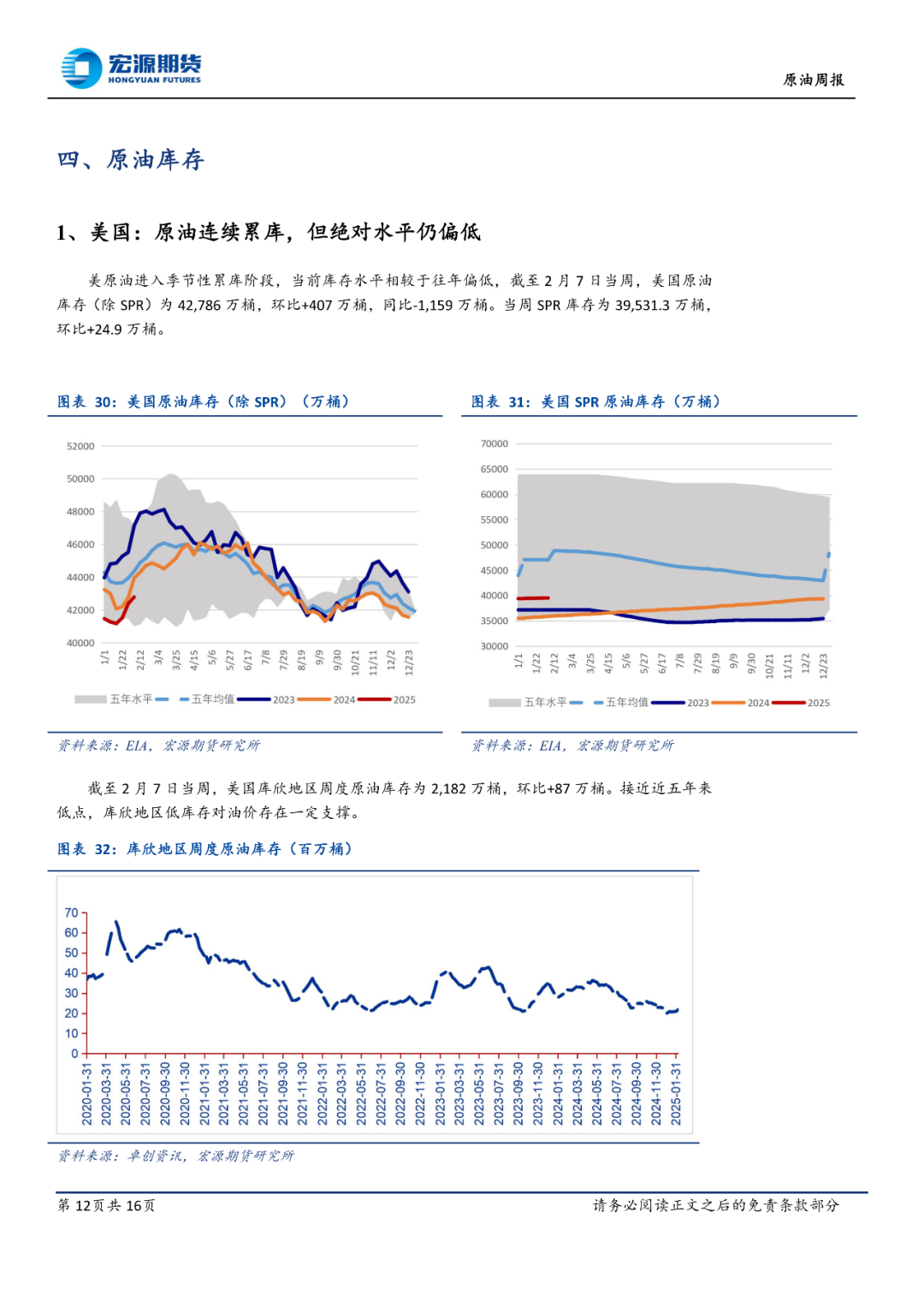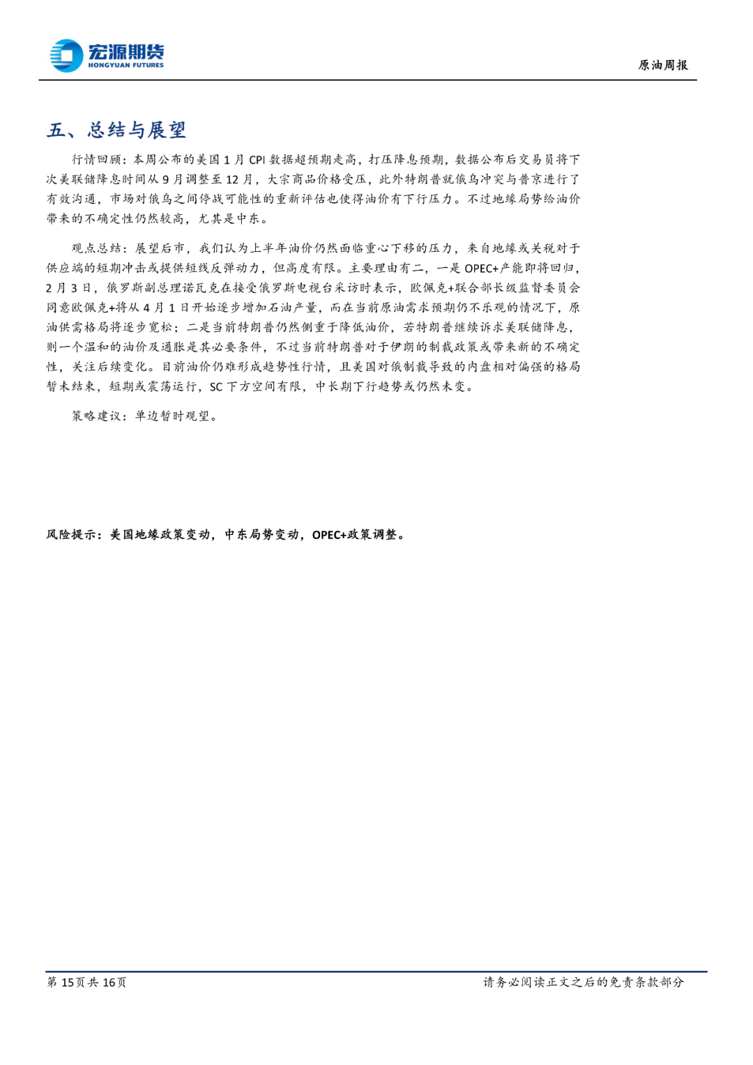 本周公布的美国 1 月 CPI 数据超预期走高,打压降息预期,数据公布后交易员将下次美联储降息时间从 9 月调整至 12 月,大宗商品价格受压,此外特朗普就俄乌冲突与普京进行了有效沟通,市场对俄乌之间停战可能性的重新评估也使得油价有下行压力。不过地缘局势给油价带来的不确定性仍然较高,尤其是中东。