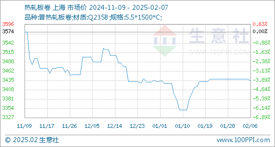2月7日生意社热轧板卷基准价为3434.00元/吨