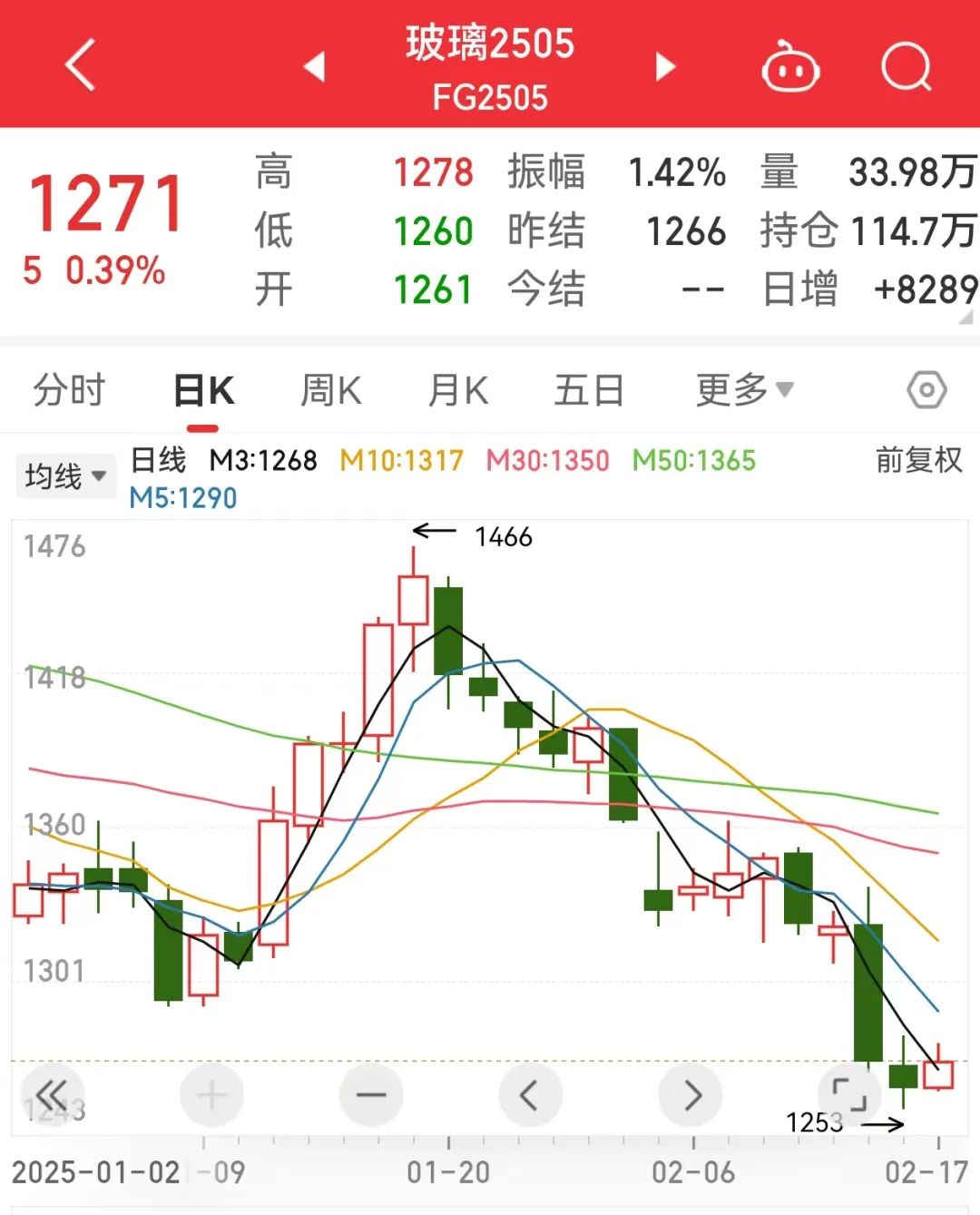 春节假期后,玻璃期货价格下行明显,主力合约FG2505跌破1300元/吨,截至周五夜盘收市,报1271元/吨。据期货日报记者统计,假期后玻璃期货价格下跌近100元/吨,跌幅超7%。如此弱势表现,远超出市场预期。
