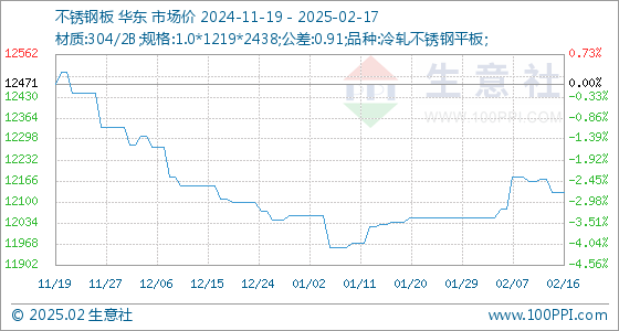 2月17日生意社不锈钢板基准价为12128.57元/吨