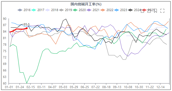 需求方面,氧化铝对烧碱需求刚需支撑,非铝下游开工率也在逐步恢复。供给方面,烧碱装置检修主要集中在2月-3月,短期来讲对产量影响不大。