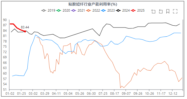节后下游电解铝厂补库较少,少数铝厂正常采购。非铝下游黏胶开工率83.44%,环比下降0.36%。