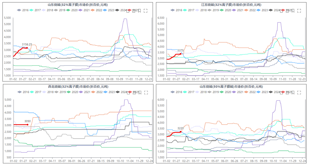 节后由于50%碱库存较少,整体表现偏强,32%碱部分厂家受订单支撑尝试挺价。