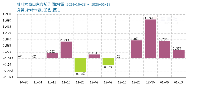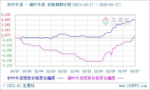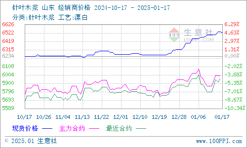 据生意社商品行情分析系统监测:本周针叶木浆和阔叶木浆保持上涨走势。2025年1月17日针叶木浆山东地区市场均价为6524元/吨,与1月12日均价相比上涨了0.37%。1月17日阔叶木浆山东地区市场均价为4770元/吨,与1月12日均价相比上涨了1.71%。