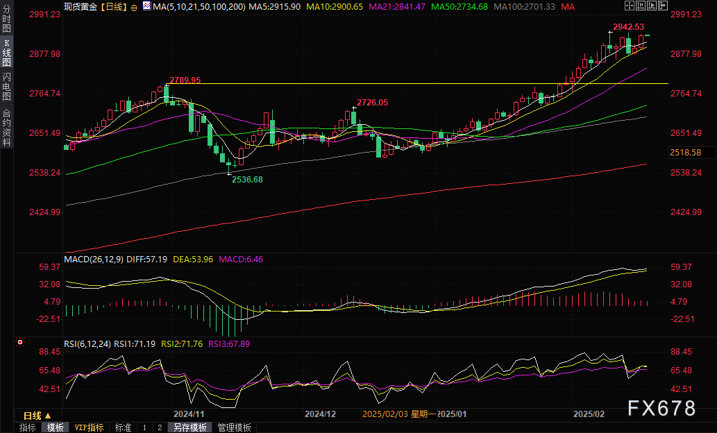 汇通财经APP讯——周三(2月19日)亚市早盘,现货黄金窄幅震荡,目前交投于2933.76美元/盎司附近。金价周二上涨超过1%,盘中最高触及2936.82美元/盎司,再度逼近上周触及的历史高点,收报2935.13美元/盎司,美国总统特朗普关税计划的不确定性引发了对经济增长的担忧,促使避险资金流入黄金。市场还关注美俄官员在沙特的会谈以及本交易日将出炉的美联储1月份货币政策会议的纪要。