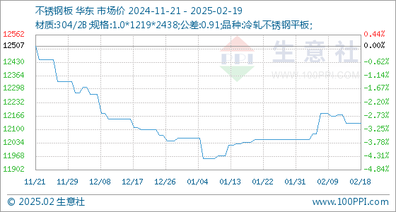 2月19日生意社不锈钢板基准价为12128.57元/吨
