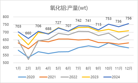 需求端来看,氧化铝存量装置开工仍处于较高水平,根据阿拉丁数据,2025年1月氧化铝总产能达10552万吨,环比12月增加50万吨;在产产能9070万吨,环比12月增加150万吨;产量772万吨,环比12月增加16万吨,对烧碱存在刚性采购需求。由于氧化铝投产计划是否延期并不确定,而液碱高价回落带来的氧化铝生产利润修复则仍对未来投产计划按时落地提供支撑,基于上半年氧化铝投产增速快于烧碱投产增速的进程来看,烧碱需求仍存增量预期。此外,非铝下游占烧碱需求仍有68%左右,随着春节假期的结束,非铝下游开工陆续提负荷,粘胶短纤、造纸等行业企业的复产会提高耗碱量,液碱库存仍存在去库预期。