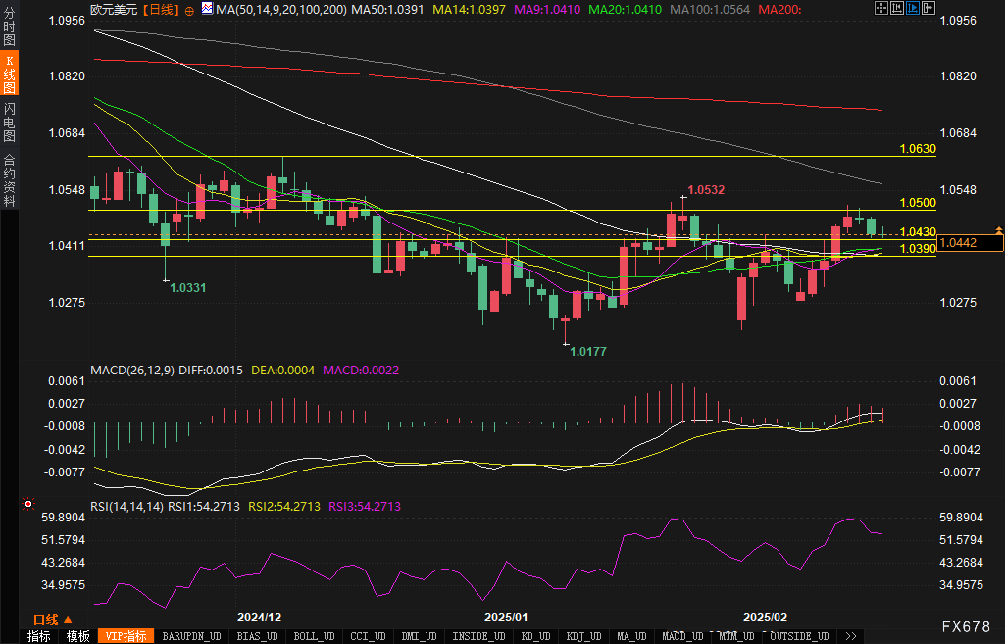 从基本面来看,美元面临的不确定性增加,尤其是美国政府的新关税政策可能对全球经济产生广泛影响。技术面则呈现震荡整理态势,关键支撑和阻力位的突破将决定短期内欧元/美元的方向。