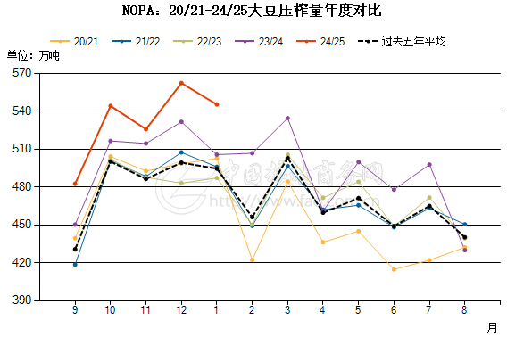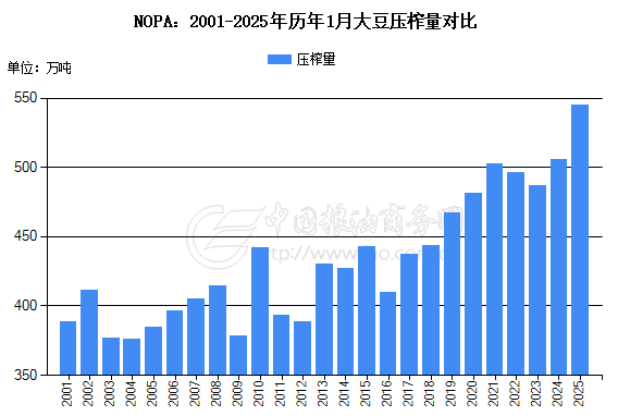 (4)美国压榨需求旺盛,利好油料及蛋白粕板块。2025年1月份NOPA会员企业的大豆压榨量为2.00383亿蒲,比2024年12月创纪录的2.06604亿蒲降低3.01%,但是同比提高7.86%,也是有史以来的第二个月度高点。