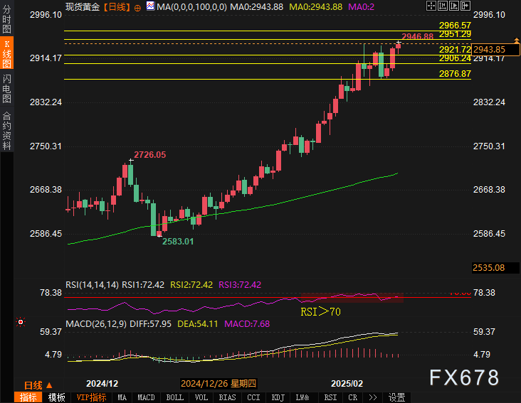 但如果纪要内容显现出美联储可能继续收紧货币政策,尤其是在通胀压力未完全消退的背景下,金价可能会面临短期回调的风险。技术上,金价能否稳住在当前高位,尤其是是否能突破2950美元的关键阻力,将决定未来走势的方向。总体来看,地缘政治和经济不确定性仍为黄金价格提供了强有力的支撑,金价短期内仍有可能维持在较高水平波动,但也需警惕可能的技术性回调。