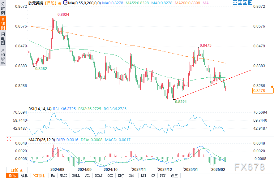目前,在2月10日0.8310的低点和0.8328的55日简单移动平均线之前,可能会在2月初0.8292的低点遇到小阻力。再往上是上周0.8352的高点。