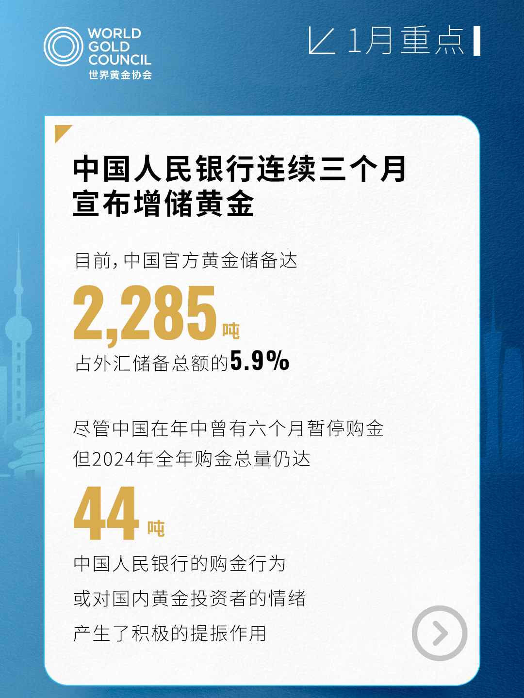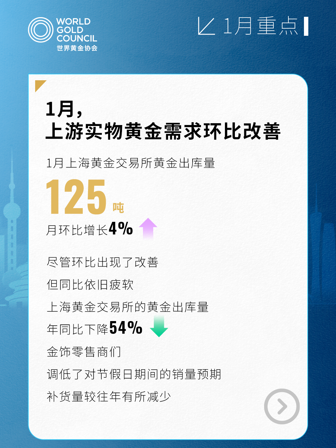 世界黄金协会:1月上游实物黄金需求环比改善央行继续购金