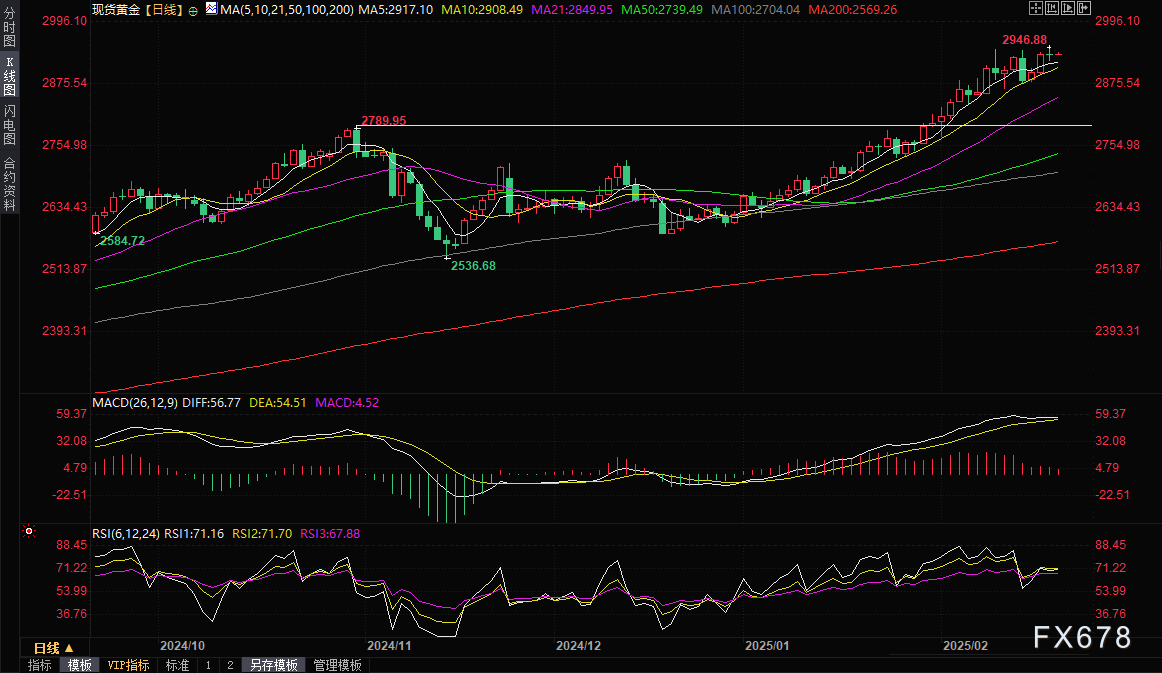 汇通财经APP讯——周四(2月20日)亚市早盘,现货黄金窄幅震荡,目前交投于2935.43美元/盎司附近。金价周三创下纪录新高至2946.88美元/盎司后回落,收报2933.05美元/盎司,接近收平,K线录得十字星,尽管美国总统特朗普最新的关税威胁令投资者感到紧张,但美元持续反弹,促使部分多头获利了结。