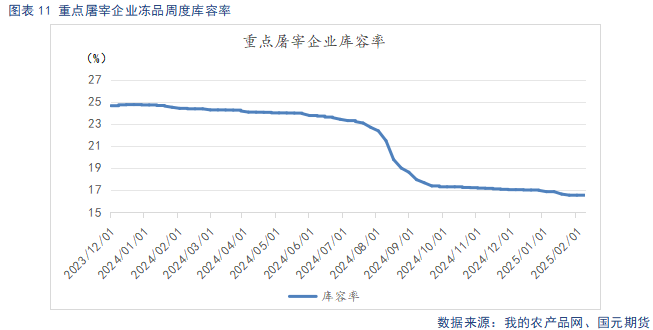 截止2月11日,重点屠宰企业开工率为20.6%,较上周环比回升3.6%,较节前峰值环比下降29.85%。冷冻肉库容率16.5%,较节前环比下降0.02%。节后下游购销缓慢开启,需求较收假初期小幅恢复,不过节后居民春节存货较多,以去库存为主,需求较节前回落明显,且已步入消费季节性淡季,回暖幅度有限,开工率回升缓慢。节后鲜肉价格走弱,市场对冻肉需求较小,冻品去库缓慢。