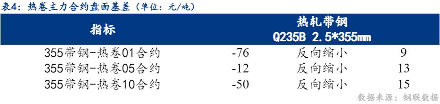 13日市场热卷05合约与355带钢价差反向缩小13元/吨,热卷10合约与355带钢价差反向缩小15元/吨。