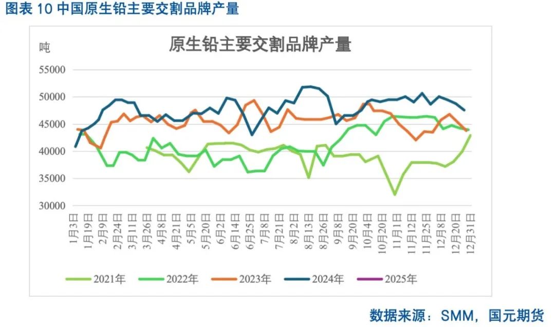 综合来看,根据排产计划,原生铅冶炼厂检修影响多体现在1月份,2月原生铅炼厂复产积极性较强,预计2月原生铅产量稳中小增。从供应节奏来看,受春节假期影响,上半月供应较下半月偏紧。