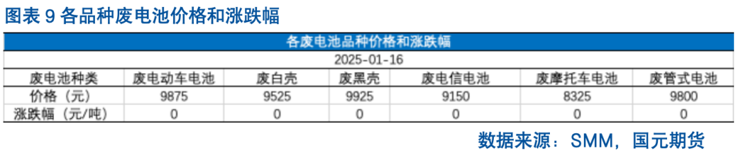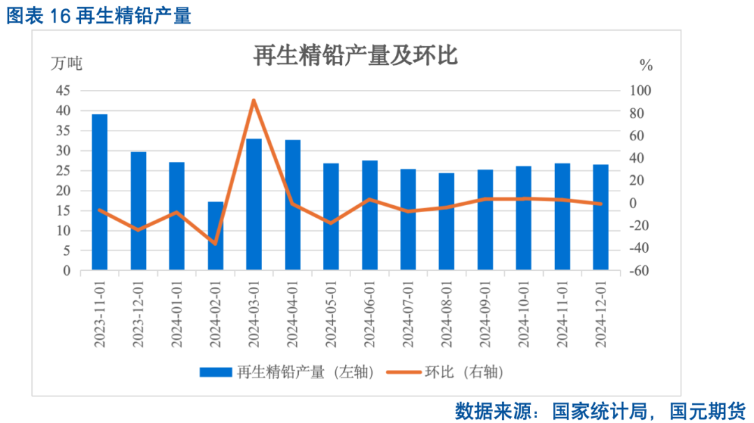 再生铅:受废电瓶供应影响,再生铅复产较晚,预计2月再生铅供应先紧后松。