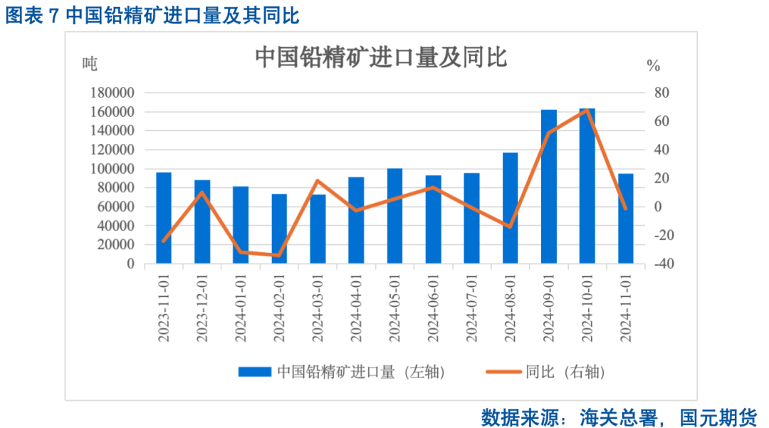 因四季度铅价内强外弱运行,铅精矿进口窗口持续开启,同时俄罗斯铅锌矿山爬产贡献增量,12月国内铅精矿进口量环比增加2.48万吨,增幅达到26.16%。