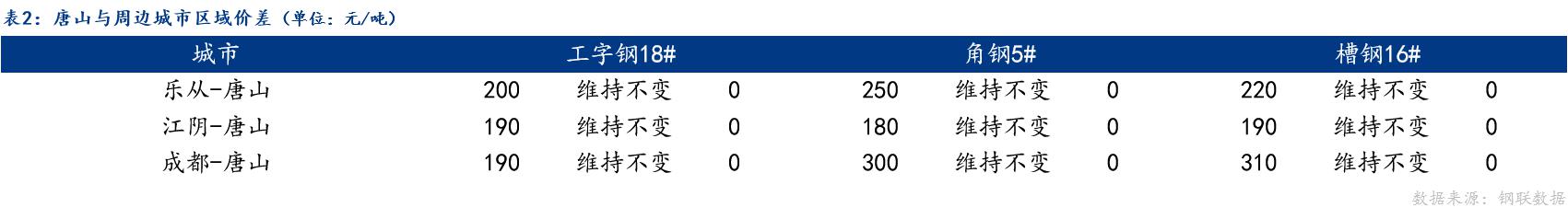 从区域价差来看,今日唐山与乐从、江阴、成都工字钢、槽钢、角钢价差维持不变;