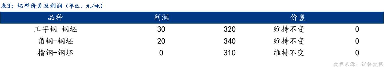 从品种价差来看,今日唐山钢坯与工字钢、槽钢、角钢价差维持不变。