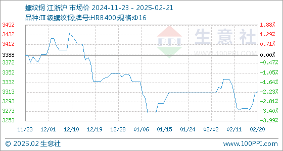 2月21日生意社螺纹钢基准价为3315.00元/吨