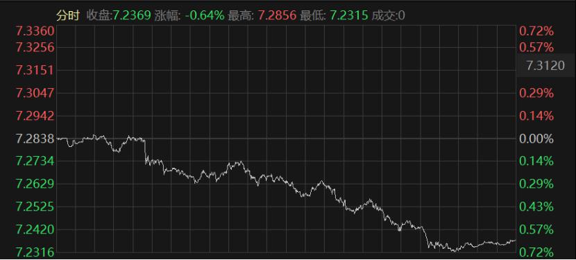 昨晚,离岸人民币表现强劲。北京时间早上6点,美元兑离岸人民币(CNH)报7.2352元,人民币较周三纽约尾盘涨490点,盘中最多报至7.2315元。