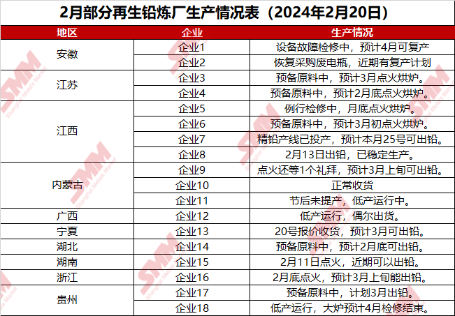 2月接近尾声 哪些再生铅冶炼厂准备复产?【SMM分析】