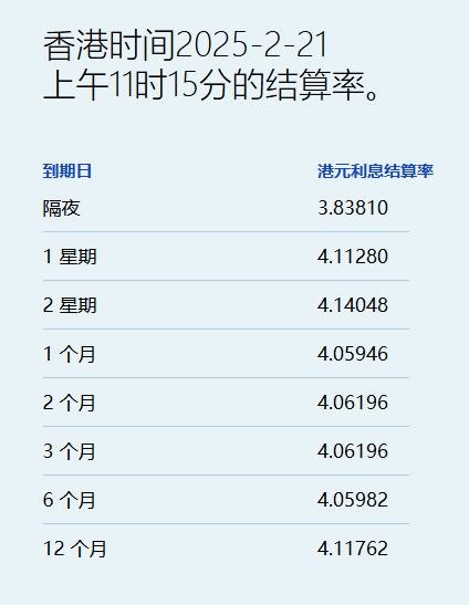 港元汇率今早创一个半月新高,见7.7711兑1美元,为1月7日以来最强,港元拆息亦几乎全线反弹,与楼按相关的一个月拆息微升至4.05946%。反映银行资金成本的三个月拆息亦回升至4.06196%。隔夜息两连跌,低见3.8381%,六个月拆息重上4%,而一年期亦升至4.117629%。