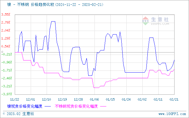 据生意社价差分析工具显示,镍和不锈钢价格基本相似,现在价格都小幅上涨。