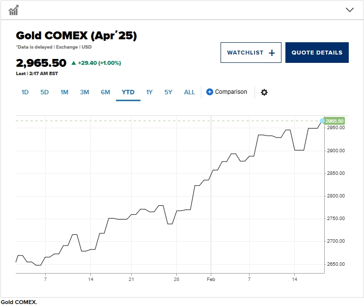 现货黄金自12月下旬以来一路上涨,从12月18日的2,587.6美元上涨至2月19日的2,941.1美元,突破了历史最高点,并实现了今年连续的周度上涨。根据世界黄金协会的数据,今年的涨幅发生在2024年全球黄金需求创下历史新高之后。