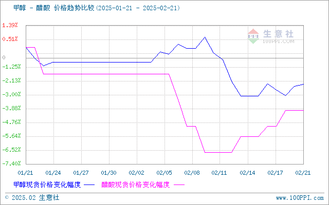 生意社甲醇-醋酸(下游产品)价格走势比较图: