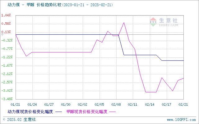 生意社煤炭/动力煤(上游原料)-甲醇价格走势比较图: