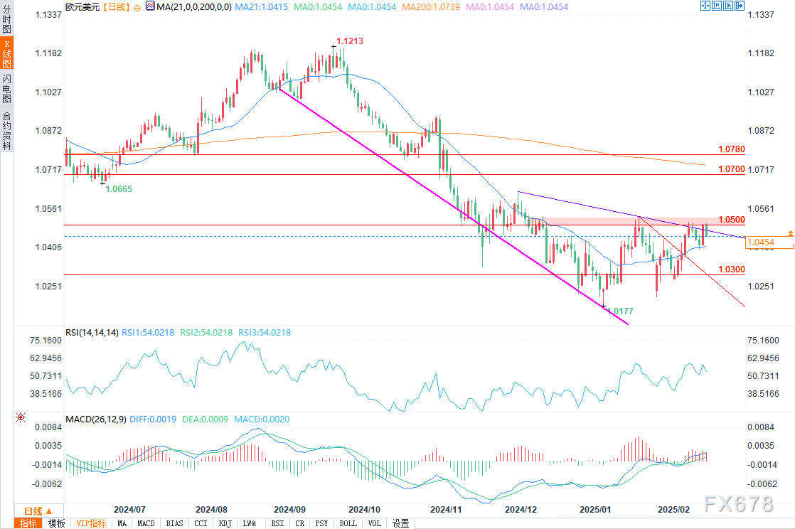 汇通财经APP讯——周五(2月21日)美盘时段,由于今晨早些时候公布的一些不太理想的采购经理人指数(PMI)数据,欧元/美元汇率再次跌至1.05关口下方,投资者也对即将在周末举行的德国大选持谨慎态度。当前的直接焦点是即将公布的美国采购经理人指数以及修正后的密歇根大学消费者信心和通胀预期数据。但在下周五美国核心个人消费支出(PCE)价格指数公布之前,不会有任何重大数据出炉,这意味着美元的所有焦点将集中在特朗普、关税和乌克兰和谈上。围绕乌克兰和平谈判的乐观情绪为欧元/美元的前景提供了一定支撑。然而,近日由于关税问题以及唐纳德.特朗普总统和乌克兰总统弗拉基米尔.泽连斯基之间酝酿的争端,市场情绪受到了轻微冲击。尽管如此,人们仍希望最终能达成协议。