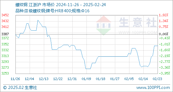 2月24日生意社螺纹钢基准价为3347.86元/吨