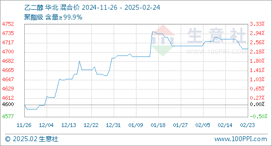 2月24日生意社乙二醇基准价为4706.67元/吨