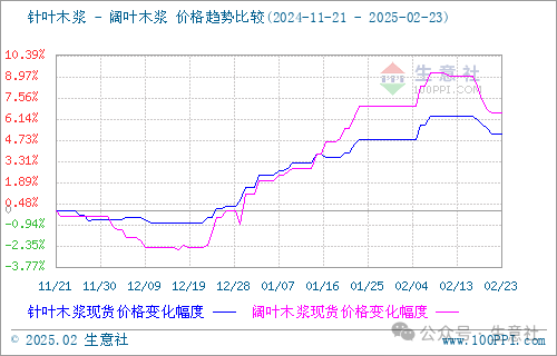 据生意社商品行情分析系统:近期针叶木浆和阔叶木浆价格均表现出下行走势。截止2月23日,山东地区针叶木浆市场均价为6626元/吨,与2月16日均价相比下降了1.1%;阔叶木浆市场均价为4860元/吨,与2月16日均价相比下降了2.21%。