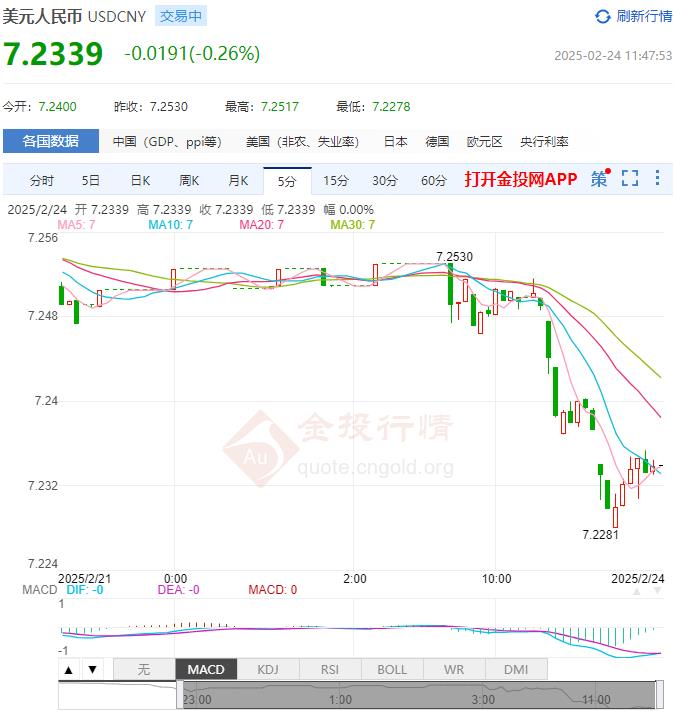 2月24日,人民币兑美元中间价报7.1717,较前一交易日下调21个基点。前一交易日,人民币对美元中间价7.1696。