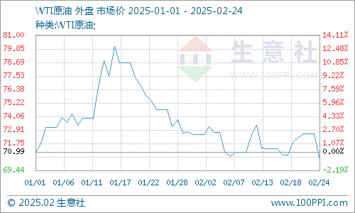 中东地缘风险下降,油价溢价回落,另外美国原油库存增加影响投资者信心。2月21日,国际原油期货急挫,美国WTI原油期货主力合约结算价报70.40美元/桶,跌幅2.08美元或2.9%。布伦特原油期货主力合约结算价报74.43美元/桶,跌幅2.05美元或2.7%。