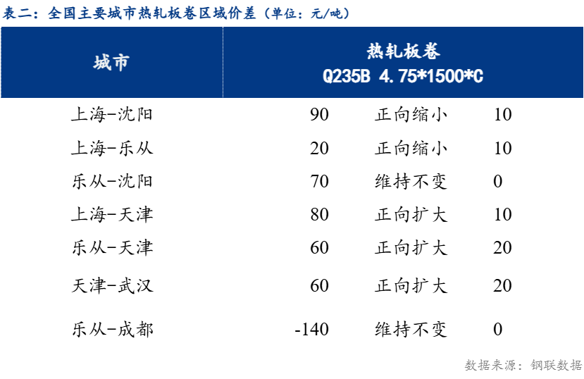 从区域价差来看,华东与东北价差90元/吨,较上一交易日正向缩小10元/吨;华东与华南价差20元/吨,较上一交易日正向缩小10元/吨;华南与华北价差为60元/吨,较上一交易日正向扩大20元/吨 。