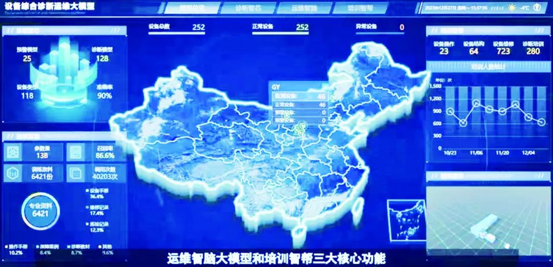 在这样的行业背景下,我国首个集检测、诊断、运维于一体的工业设备诊断大模型,由国家能源集团数智科技开发(北京)有限公司(以下简称“国能数智科技公司”)研发而成。“工业设备诊断运维大模型提升了我国工业设备运维智能化、数字化水平,是我国在全球能源产业竞争中取得主动权的关键一步。”数智科技公司副总经理高彦超介绍,设备诊断运维大模型的成功研发与应用,开启了我国工业设备诊断从“人工诊断”“小模型诊断”向“大模型智能诊断”迈进的新征程。