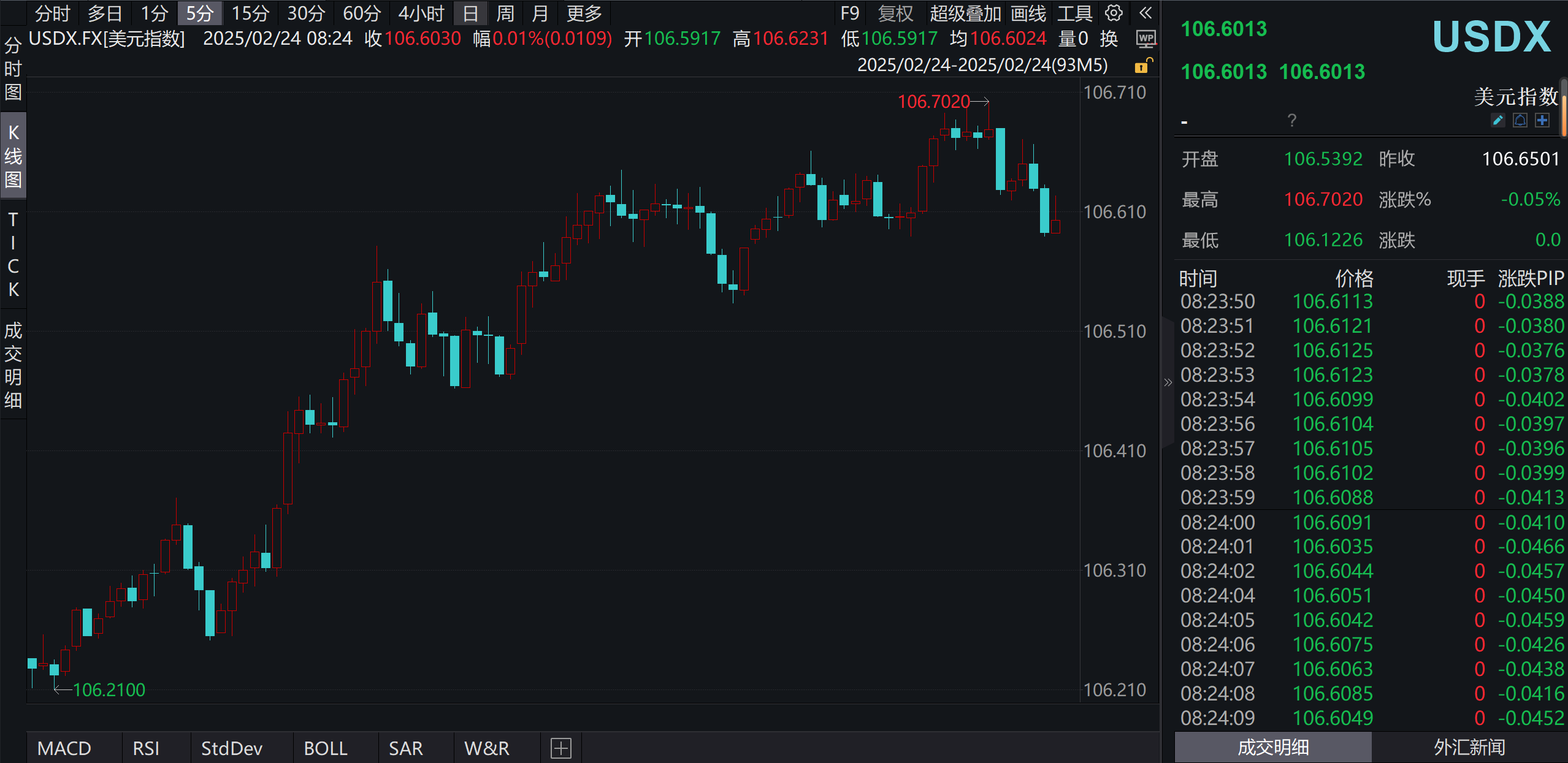 “尽管2月24日当天美元指数有所反弹,但这不会影响外汇市场对人民币等非美货币的看涨情绪。”他认为。究其原因,除了特朗普持续加码贸易保护主义政策令全球投资机构担忧美国经济增长风险与持续削减美元多头头寸避险,人民币汇率还获得两大“利好”,一是节后10年期中国国债收益率从1.564%回升至1.78%,令中美利差倒挂幅度(10年期中美国债收益率之差)从-300个基点收窄至-266个基点,令海外量化投资基金相应削减离岸人民币空头头寸;二是DeepSeek的面世,带动全球投资机构纷纷调高中国科技股估值,带动大量资金纷纷涌入中国科技股板块,推高了人民币需求。