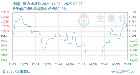 2月25日生意社棕榈油基准价为10090.00元/吨