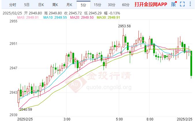 周二(2月25日)亚市早盘,现货黄金下跌,目前交投于2945.75美元/盎司,跌幅0.25%,今日金价开盘于2949.41美元/盎司,最高上探2953.58美元/盎司,最低触及2944.92美元/盎司。周二美联储理事巴尔讲就金融稳定性发表讲话、美联储巴尔金将就通胀发表讲话,投资者需要重点关注。另外,留意美国2月谘商会消费者信心指数和美国2月里奇蒙德联储制造业指数。继续关注特朗普相关动态消息和俄乌局势进展。