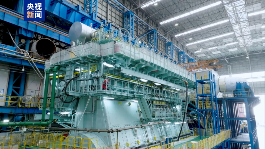 中船集团中船动力甲醇发动机项目经理董晶瑾:打个比方,假如这台主机每年运行300天,那么它减排的碳排放量相当于72000辆普通家用燃油车一年的排放量。