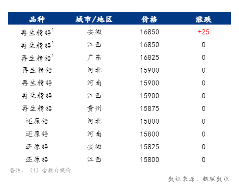安徽市场企业再生精铅含税价16850元/吨出厂少量成交,高铋货源,反映下游接货意愿一般。