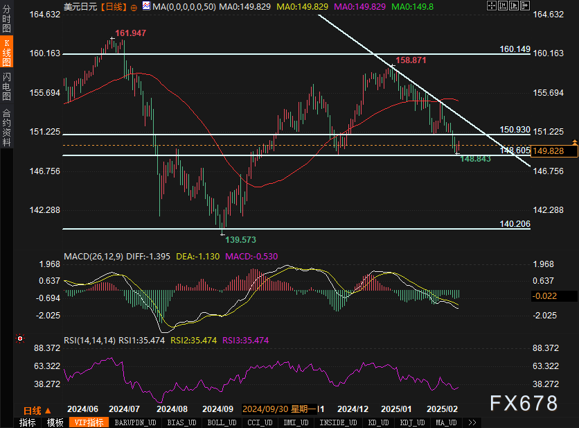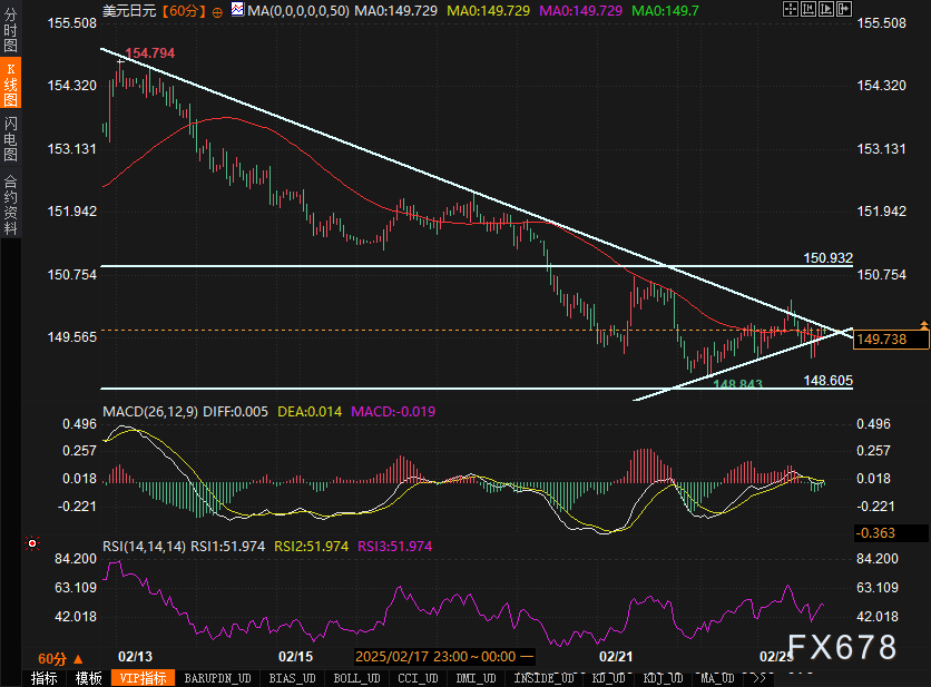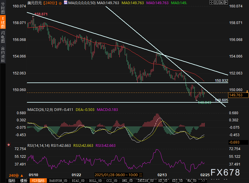 汇通财经APP讯——周二(2月25日),美元兑日元的走势仍然复杂。近期美元兑日元呈现反弹迹象,主要受到美元反弹以及美国相关政策动向的影响。然而,市场情绪和技术指标表明,尽管短期内可能存在反弹的空间,整体走势仍面临下行压力。以下将从基本面和技术面两个角度对近期走势进行深入分析,并探讨未来的市场趋势。